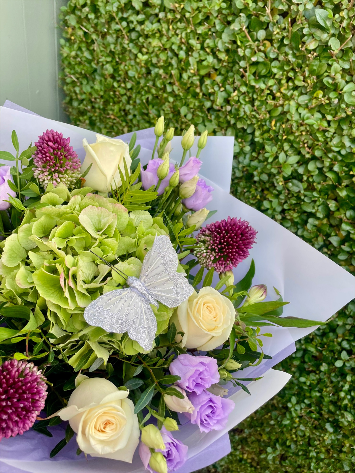All of our bouquets are beautifully presented in a gift box with matching tissue paper and delivered in a water bubble to ensure freshness. You’ll also have the option to add a personalised card message at checkout.
